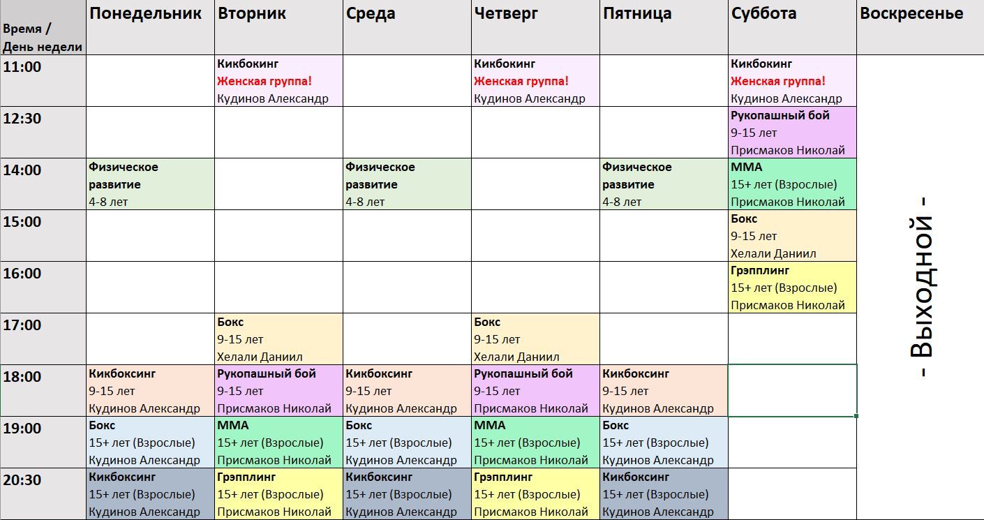 - двухразовые тренировочные занятия (ежедневно);